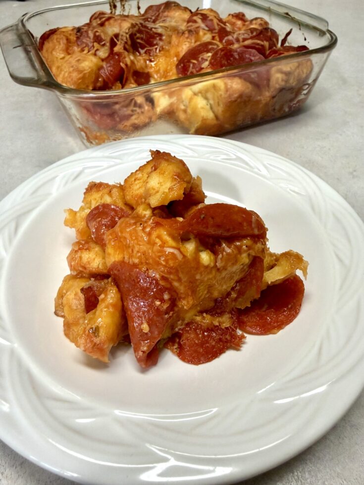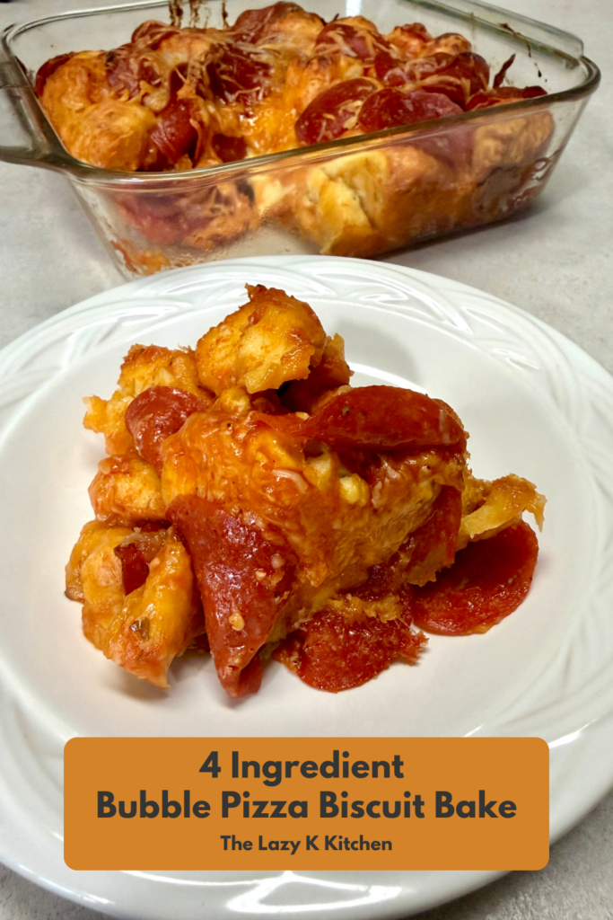 What is in a 4 Ingredient Bubble Pizza Biscuit Bake? (scroll down for the printable recipe card)
