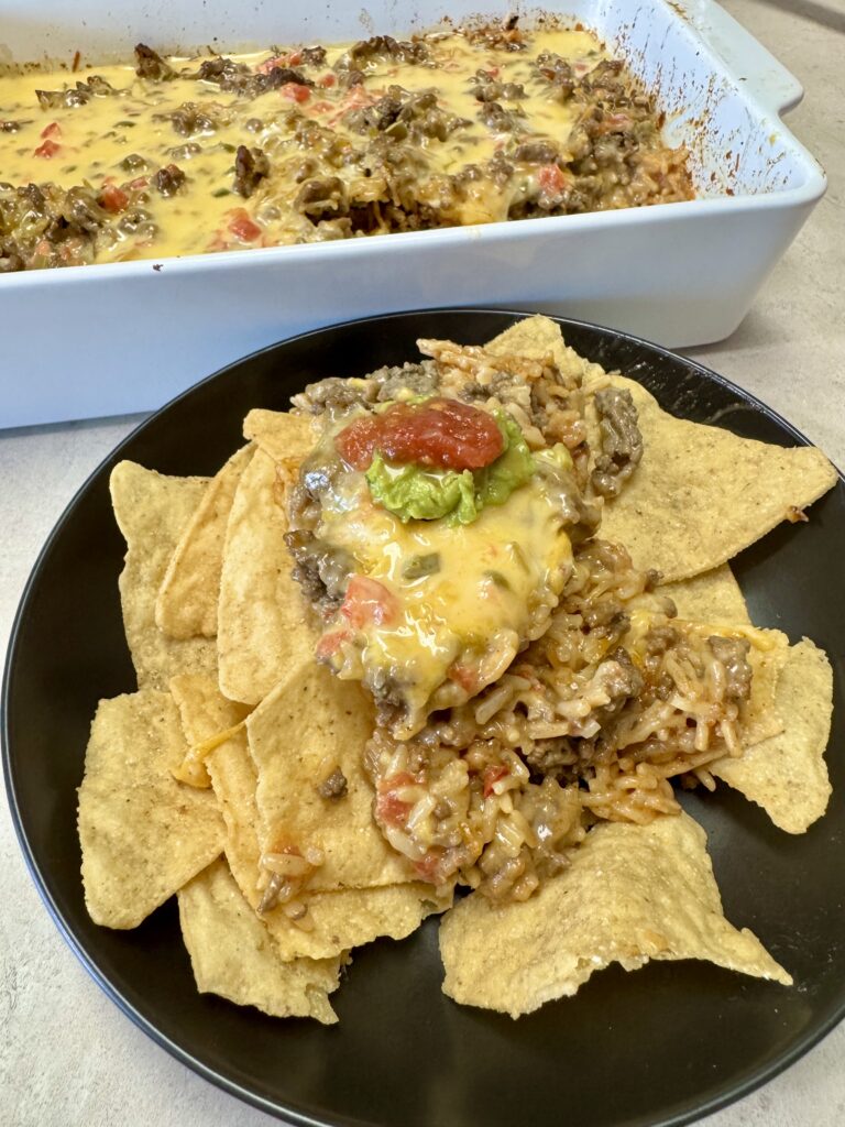 What is in a 6 Ingredient Taco Bake? (scroll down for the printable recipe card)