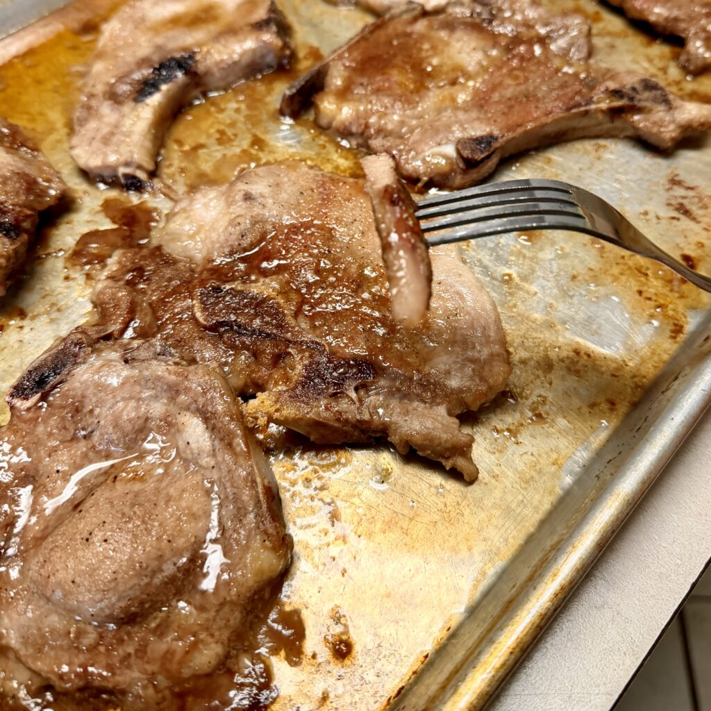 - Place pork chops onto a baking sheet